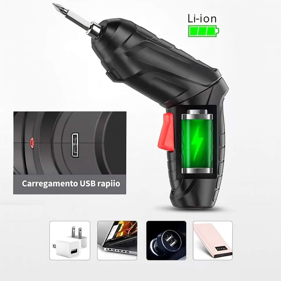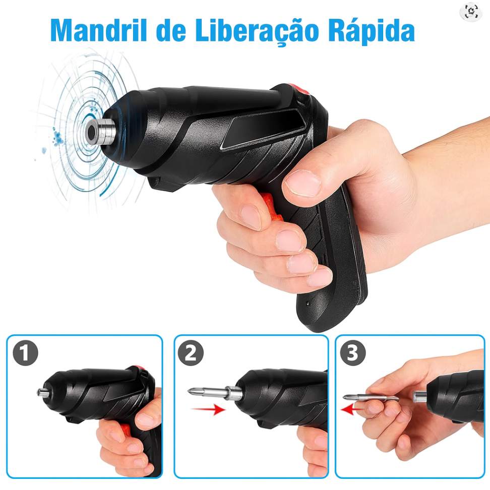 Transforme qualquer tarefa de montagem ou reparo em algo rápido e prático! O Kit Parafusadeira Elétrica Multifuncional é o aliado perfeito para quem busca eficiência, conforto e versatilidade em casa ou no trabalho. Compacta, leve e poderosa, ela facilita desde a montagem de móveis até pequenos reparos em madeira, plástico ou metal.